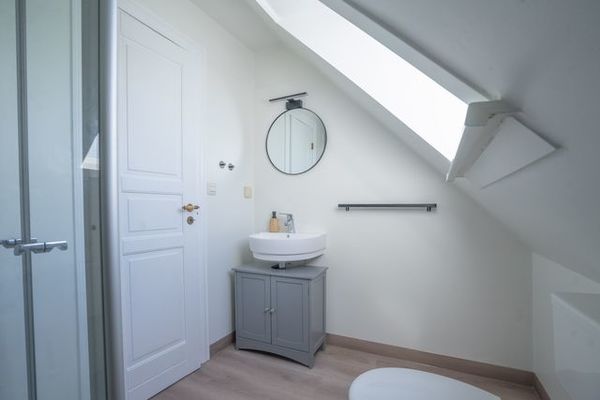 Die Deichkoje 6 ist eine charmante Doppelgeschosswohnungmit ca. 65m² Wohnfläche und bietet Platz für bis zu sechs Personen. Sie verfügt über zwei separate Schlafzimmer mit gemütlichem Doppelbett sowie zwei Einzelbetten und ein helles Wohn- und Esszimmer mit zusätzlicher Schlafcouch ideal für Familien, Gruppen oder Paare, die gemeinsam reisen. Die offene Küchenzeile ist funktional ausgestattet mit allem, was man für eine entspannte Selbstverpflegung braucht: Kochfeld, Kühlschrank, Kaffeemaschine, Toaster und Wasserkocher bewusst reduziert auf das Wesentliche, ohne Backofen und Geschirrspüler. Das moderne Duschbad ist gepflegt und hell.