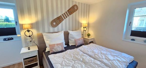 Das großzügige Ferienhaus "Albertshus" bietet auf drei Ebenen Platz für bis zu 8 Personen und vereint gehobenen Komfort mit Wohlfühlatmosphäre. Vier Schlafzimmer mit Smart-TV und Verdunkelungsmöglichkeit drei davon mit hochwertigen Boxspringbetten, eines mit Etagenbett mit extrabreiter Liegefläche unten (120cm) sorgen für erholsamen Schlaf. Das Erdgeschoss-Schlafzimmer mit barrierearmem Duschbad gegenüber ist besonders für Gäste mit eingeschränkter Mobilität geeignet. Ein weiteres Duschbad befindet sich im Obergeschoss.