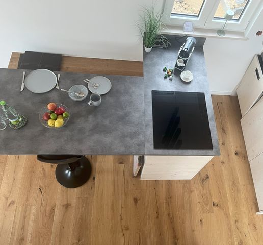 Die Küche ist mit allem ausgestattet, damit keine Wünsche offen bleiben: Induktionskochfeld, Backofen, Kühlschrank mit Gefrierfach, Spülmaschine, Kapsel Kaffee-/Espressomaschine, Wasserkocher, Toaster.