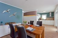 Genießen Sie die frische Meeresbrise auf der möblierten Terrasse, die mit Gartenmöbeln und einem Holzkohlegrill ausgestattet ist. Das Haus bietet außerdem kostenloses W-LAN, zwei Parkplätze direkt am Haus, einen abschließbaren Fahrradschuppen und alle Fenster sind mit Fliegenschutzgittern und Plissees versehen.