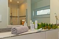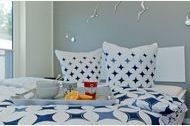 Zwei Schlafzimmer mit jeweils einem Doppelbett (180x200 cm) laden zum erholsamen Schlaf ein. Das geräumige Badezimmer verfügt über eine ebenerdige Dusche, Fön, Kosmetikspiegel und eine Waschmaschine. Für Ihre Entspannung steht eine finnische Sauna gegen Gebühr bereit.