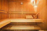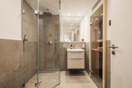 - Ein elegantes Badezimmer mit Dusche und privater Sauna