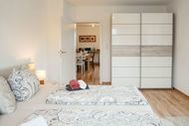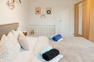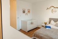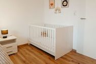 Das zweite Schlafzimmer hat ein gemütliches 140 cm Boxspringbett sowie ein Gitterbett für Kinder bis drei Jahren und einen Kleiderschrank.