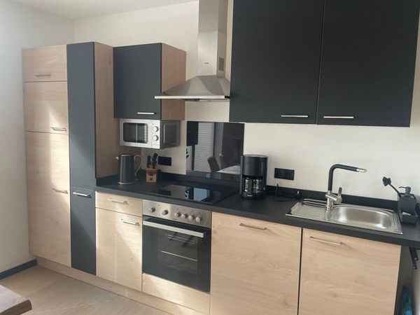 - Küchenbereich mit Küchenzeile (Backofen, Mikrowelle, 4 Zonen - Induktionskochfeld, Kühlschrank mit