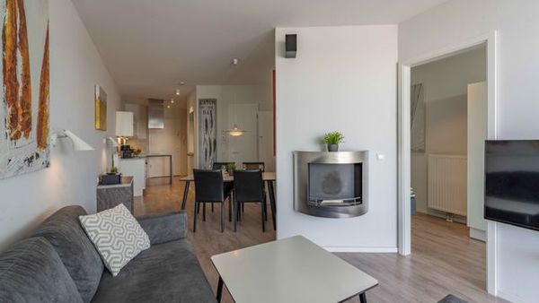 Regendusche. Im Wohnbereich sorgen am Abend die Flammen des Bioethanolkamins für eine gemütliche Atmosphäre, ebenso wie die vorbeifahrenden großen Schiffe mit ihrer eindrucksvollen nächtlichen Beleuchtung.