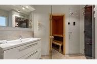 Die Wohnung ist stilvoll, hochwertig und modern eingerichtet. Ein besonderes Highlight ist ihr persönlicher Wellnessbereich mit Sauna, Whirlpool und Dampfbad mit integrierter Doppel-