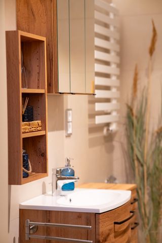 Die aktuelle multimediale Ausstattung mit Fernseher (inkl. Internetanschluss) und Soundbar lässt auch bei einem regnerischen Tag keine Wünsche offen. In der angeschlossenen Küche wird es Ihnen an nichts fehlen. Die moderne Küchenausstattung (Kühl- und Gefrierkombination, Induktionskochherd, Backofen, Mikrowelle, Geschirrspüler) hilft beim Zaubern so mancher Leckerei, freut sich aber auch Ihnen beim Frühstück behilflich zu sein. Das Badezimmer ist gemütlich und barrierefrei mit einer ebenerdigen, großen Dusche ausgestattet.