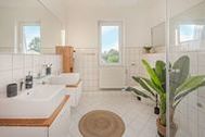 Das moderne Badezimmer ist mit zwei Waschbecken sowie Sitzverkleinerer, Töpfchen und Kindertritt ausgestattet.