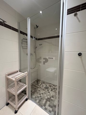 Vom Eingangsbereich betreten Sie den Wohnbereich mit integrierter Einbauküche. Die hochwertige Einbauküche ist ausgestattet mit Ceranfeld, Backofen, Geschirrspüler, Kühlschrank mit Gefrierfach, Kaffeemaschine, Wasserkocher, Toaster und selbstverständlich ausreichend Geschirr und Besteck.