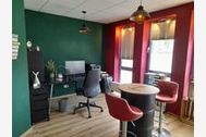 Nach Betreten des Flurbereiches mit Garderobe und kleiner Sitzgelegenheit finden Sie links gelegen den Arbeitsraum mit großem Schreibtisch, PC und Monitor ideal fürs Home-Office. Ein schnelles WLAN steht selbstverständlich bereit. Für entspanntes Networking oder kurze Pausen gibt es Bar-Stehtische und eine elektrische Dartscheibe.