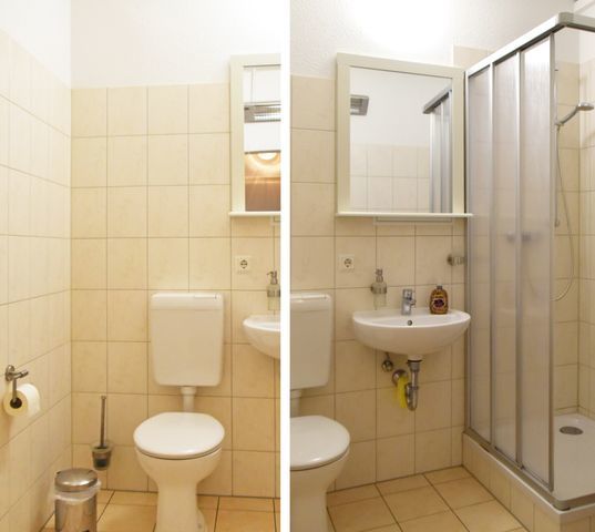 Die Gästewohnung in der Platanenstr. 1 verfütg über 1 Wohnzimmer, 1 Küche und 1 Bad mit Dusche.