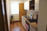 Ferienwohnung mit zwei Zimmern, Küche und Badezimmer.