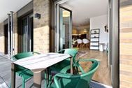 Dusche/WC, Bettwäsche, Musikanlage, Balkon, Nichtraucher, Waschmaschine, Spülmaschine, Haartrockner, Kühlschrank, Backofen, Heizung, WLAN, behindertengerecht, TV - Flachbild, Küche (offen), Tiere nicht erlaubt, Doppelbett, Schlafsofa, Kaffeemaschine, Dusche ebenerdig, Toaster, Wasserkocher, Bügelbrett, Sonnenschutz, Reinigungsutensilien