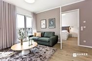 Neubau - 09/2025 (Hausnummer 65, Wohnung 61) Sehr schöne, großzügige 2-Raum-Ferienwohnung auf ca. 55m² für bis zu 4 Personen (max. 2 Erw. 2 Kinder bis 16J.) geeignet. Sonniges Wohn- / Schlafzimmer mit hochwertiger Schlafcouch, TV, Radio, kostenloses W-LAN-Internet, Essplatz, Außenjalousien u. Plissees, Zugang zum sonnigen Südbalkon. Vollausgestattete Küche (Geschirrspüler, Backofen, Ceranherd, Dunstabzug) Kühlschrank mit Gefrierfach. Schlafzimmer mit Doppelbett (2 x 0,90m), TV, Außenjalousien u. Plissees. Großzügige, barrierefreie Dusche, WC. Hauswirtschaftsraum in der Wohnung mit eigener Waschmaschine, Bügeleisen/Bügelbrett. Breiter Pkw-Stellplatz in der Tiefgarage (#111) und Fahrradkeller in der TG. Selbstverständlich Nichtraucher und Haustiere sind nicht zugelassen.