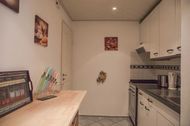 Auf der unteren Ebene befinden sich das Wohnzimmer mit Couchgarnitur und Essplatz für 5 Personen, ein Schlafzimmer mit Doppelbett (160 x 200 cm), die komplett ausgestattete Küchenzeile (Herd mit Ofen, Wasserkocher, Kaffeemaschine, Eierkocher, Kontaktgrill, Sandwichmaker, Mikrowelle, Waffeleisen, Kühlschrank mit Gefrierfach und Geschirrspülmaschine) sowie das Badezimmer mit Badewanne und WC. Eine Holztreppe führt ins Obergeschoss, in dem sich ein Raum mit drei weiteren Schlafgelegenheiten (1 Doppelbett 1,80m x 2m und 1 Einzelbett 1m x 2m) befindet. Ein Schreibtisch sowie ein zweites TV-Gerät mit DVD runden das Angebot ab. Kostenloses WLAN. Ausreichend Stauraum ist in den z.T. begehbaren Kleiderschränken vorhanden.