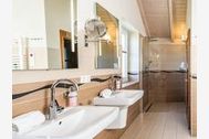 Im Inneren sorgt ein offener Wohn- und Essbereich mit moderner Küche, Kaminofen und gemütlicher Sofaecke für eine angenehme Atmosphäre. Das Obergeschoss verfügt über ein Wellnessbad mit großer Sauna und einer Badewanne im XXL-Format für zwei Personen. Im Erdgeschoss befindet sich ein barrierearmes Bad mit ebenerdiger Dusche.