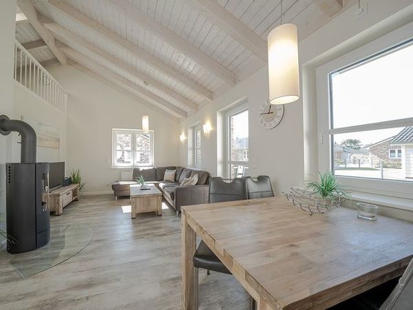 Die 50 m² große, helle Doppelhaushälfte eignet sich ideal für Paare oder Alleinreisende, die Ruhe, Komfort und die Nähe zum Meer suchen. Der offene Wohn- und Essbereich verfügt über eine voll ausgestattete Küche, einen Essplatz sowie eine Sofaecke mit Kaminofen für gemütliche Abende. Das Schlafzimmer ist mit einem Doppelbett ausgestattet, im Badezimmer sorgt die Fußbodenheizung für angenehme Wärme.