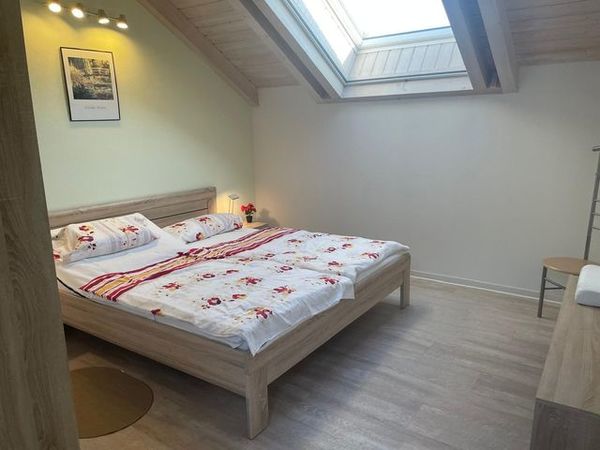 Hier befinden sich die beiden Schlafräume, ausgestattet mit einem Doppelbett und Kleiderschrank zwei auseinanderstehenden Betten, Sideboard und Leselampen am Bett -kein Kinderbett !- Rauchmelder sind installiert und ein Treppenschutzgitter sorgt für Sicherheit im Obergeschoss.