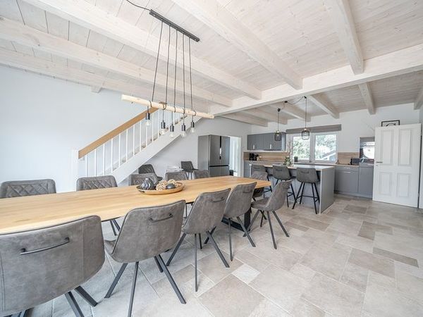 Dieses großzügige, 2024 erbaute Holzhaus mit 245 m² Wohnfläche bietet Platz für bis zu zwölf Personen und verbindet modernes Design mit nordischem Charme. In unmittelbarer Nähe zum Deich, dem Fährhafen und dem Ortszentrum von Dagebüll vereint es Ruhe, Komfort und Küstennähe auf besondere Weise.