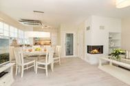- Wohnbereich: Offener, lichtdurchfluteter Wohn- und Essbereich mit Erker, Ecksofa mit Ottomane, Essgruppe für 6 Personen und gemütlichem Gaskamin