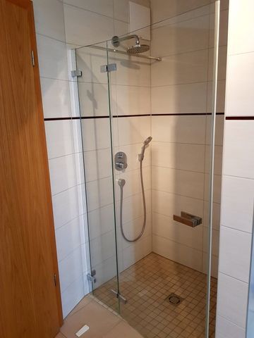 Badezimmer mit Dusche und WC, freundliche Einrichtung mit Liebe zum Detail.