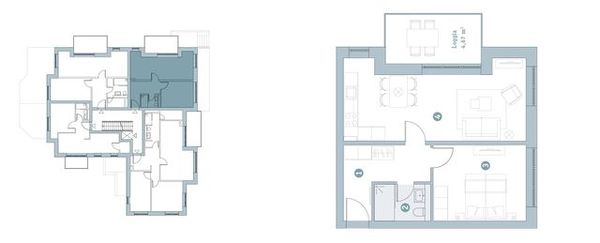 Die Ferienwohnung im Obergeschoss überzeugt auf rund 57m² mit einem hellen, offenen Wohn- und Essbereich und vollausgestatteter Küche. Von der Loggia genießen Sie einen herrlichen Blick auf die Harle und auf den Museumshafen.