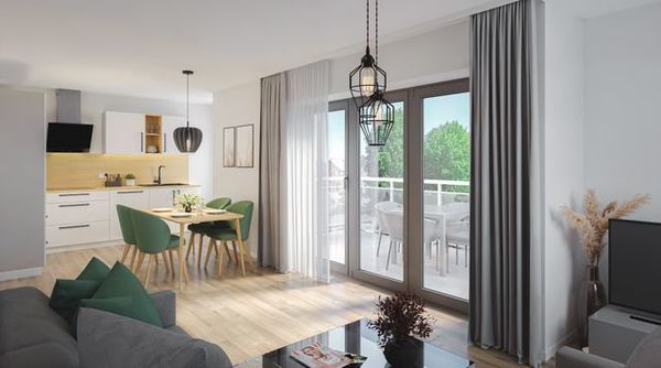 Auf ca. 60 m² bietet diese Obergeschosswohnung einen offenen Wohn- und Essbereich mit voll ausgestatteter Küche. Von der Loggia genießen Sie den malerischen Blick auf die Harle und den Museumshafen.