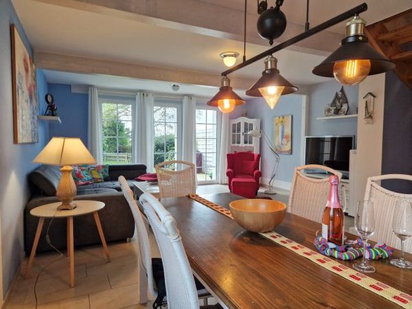 Hübsche Doppelhaushälfte mit knapp 100 m2 für bis zu 6 Personen, über 2 Etagen. Liebevoll eingerichtet mit kostenfreiem WLAN, Waschmaschine, Sonnenterasse mit Blick auf die Peenewiesen, Grill, Pkw-Stellplatz am Haus.