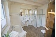 Zwei Schlafzimmer mit Doppelbetten laden zum ausruhen ein. Im Bad erwartet Sie eine Dusche ohne Einstiegsschwelle, eine Badewanne, eine Sauna und ein WC. Ein weiteres WC ist separat vorhanden.