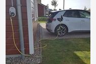 Gäste, die per E-Auto anreisen, können eine an der Hauswand angebrachte Wallbox zum Laden ihres Fahrzeugs nutzen.