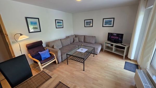 Die Ferienwohnung 2 befindet sich im Erdgeschoss in der Ferienanlage "Haus am See" mit 69 qm (Schlafzimmer mit Doppelbett, Küche mit Essplatz, Wohnzimmer mit Schlafcouch für 2 Personen). Aus dem Wohnzimmer gelangt man direkt auf die grosse Südwest-Terrasse und in den Garten.