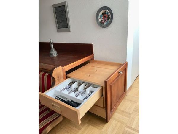 Die Wohnung besticht durch ein großzügiges Wohnzimmer mit offener, voll ausgestatteter Küchenzeile sowie einem großen, über Eck liegenden Balkon, auf welchem Sie die gute Bergluft bei einem Glas Wein genießen können.