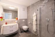 Das Badezimmer en suite ist mit einer begehbaren Dusche ausgestattet. Auf dem überdachten Sonnenbalkon mit Essgruppe und zwei Relax-Sesseln, Fußhockern sowie einem Sonnenschirm können Sie die Seele baumeln lassen.