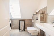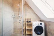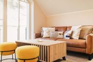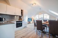 Das lichtdurchflutete Apartment besticht durch eine einzigartige Loft-Atmosphäre. Der großzügige offene Wohn-, Ess- und Küchenbereich wird durch hohe Decken noch verstärkt. Das Design ist hell und freundlich, wobei viel Holz eine besonders gemütliche und moderne Wohlfühlatmosphäre kreiert.