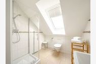 Die 6 Schlafzimmer verteilen sich auf zwei Etagen. Im Dachgeschoss befinden sich drei großzügige Doppelzimmer, jeweils mit eigenem Bad und kleiner Teeküche. Im 1. Obergeschoss liegen drei weitere Schlafzimmer, die sich ein großes Bad mit XXL-Dusche und Badewanne sowie ein separates WC teilen. Die Wohnung verfügt über kostenloses WLAN und mehrere TV-Geräte. Zwei kostenfreie Parkplätze befinden sich in der Nähe, weitere Stellplätze sind auf einem Großparkplatz (ca. 500m) verfügbar.