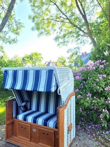 Sie haben in dem grossen Garten einen separatem Terassenplatz mit Gartenmöbeln und Strandkorb. Der Weg zum Strand ist ca 7 Minuten zu Fuss.