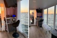 Erlebnisreiche Urlaubstage auf Rügen und sich dann zur Nacht von den Wellen in den Schlaf wiegen lassen - das geht im Hausboot Lydia im Hafen von Gager, mitten in der Idylle des Biosphärenreservates Südost-Rügen! Genießen Sie die besondere Atmosphäre an Bord des schwimmenden Hausbootes Lydia, das gut vertäut am Steg auf Sie wartet. Auf rund 48 m² Wohnfläche finden hier bis zu vier urlaubshungrige Feriengäste Platz. Highlights der komfortablen Ausstattung sind eine private Sauna, ein elektrischer Kamin und natürlich auch die großzügige Dachterrasse, die mit herrlichem Ausblick über das Wasser zum Sonnenbaden einlädt. [nbsp] Auch sonst finden Sie an Bord alles, was eine Ferienunterkunft haben muss: eine gut ausgestattete Küche, die seemännisch Kombüse heißt, eine Kabine mit einem Doppelbett, eine Kabine mit einem Doppelstockbett, ein Bad mit Dusche/WC und natürlich einen gemütlichen Wohnbereich mit Couch, Esstisch, TV, Radio und W-LAN. Wer mag, taucht gleich von Bord aus im Wasser des Greifswalder Boddens ab. Darüber hinaus haben Sie die Qual der Wahl, an welchem der Strände Rügens Sie relaxen möchten. Der nächste Naturstrand am Bodden ist etwa 1.000 Meter entfernt, bis zum nächsten Sandstrand an der Ostsee sind es rund 2.500 Meter. Gut zu wissen: