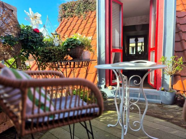 Über eine Treppe gelangen Sie in das Obergeschoss, wo sich das gemütliche Schlafzimmer mit Doppelbett (1,40 m) und einer charmanten Tageslichtgaube befindet. Von hier fällt der Blick direkt auf die Dachterrasse ein Vorgeschmack auf entspannte Stunden an der frischen Luft.