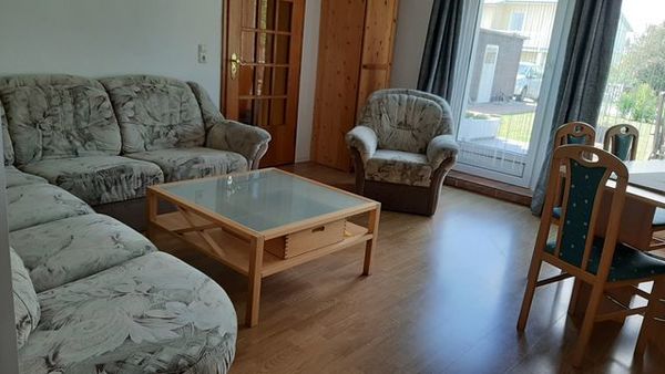 3-Raum-Ferienwohnung (80 m², für bis zu 7 Personen) im Erdgeschoss mit Terrasse.