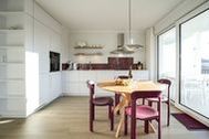 Die Villa Kamadori im Friedrich-Ebert-Ring im Seebad Ahlbeck ist eine exklusive, moderne Stadtvilla in strand- und zentrumsnaher Lage. Das stilvolle Haus beherbergt acht hochwertige 3-Raum-Appartements und ein 2-Raum-Appartement ideal für Paare und Familien, die Wert auf Komfort, Design und eine ruhige Umgebung legen. Alle Wohnungen sind geschmackvoll eingerichtet und bieten ein helles, modernes Ambiente. Je nach Appartement gehören Sauna und/oder Kamin zur Ausstattung und sorgen für eine besonders angenehme Wohlfühlatmosphäre perfekt für erholsame Tage zu jeder Jahreszeit. Ein Aufzug führt bequem in alle Etagen. Für Fahrräder steht ein gemeinschaftlich genutzter Abstellraum zur Verfügung. Jede Wohnung verfügt über einen eigenen Stellplatz in der Tiefgarage (Durchfahrthöhe 1,85m) praktisch und komfortabel.