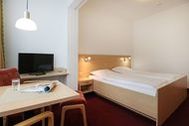 Doppelzimmer 102 (22m²) für 2 Personen, liegt im Erdgeschoss mit Terrasse und bietet ein Doppelbett, einen Kleiderschrank, Fernseher, Sitzgelegenheit sowie ein Tageslicht-Duschbad mit ebenerdiger Dusche, Waschtisch und WC. Ein öffentlicher, kostenpflichtiger Parkplatz befindet sich in ca. 500 m Entfernung.