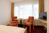 Zimmer 210 (22m²) für 2 Personen, liegt im 1. Obergeschoss und bietet ein Doppelbett, einen Kleiderschrank, Fernseher, Sitzgelegenheit sowie ein Tageslicht-Duschbad mit ebenerdiger Dusche, Waschtisch und WC. Ein öffentlicher, kostenpflichtiger Parkplatz befindet sich in ca. 500 m Entfernung.