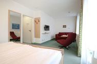 Zimmer 307 (30m²) für 2 Personen, liegt im 2. Obergeschoss mit Dachterrasse und Blickrichtung Mittelpromenade. Es bietet ein Doppelbett, Sofa mit Lesesessel, einen Kleiderschrank, Fernseher sowie ein Tageslicht Duschbad mit höherem Duscheinstieg, Waschtisch und WC. Ein öffentlicher, kostenpflichtiger Parkplatz befindet sich in ca. 500 m Entfernung.