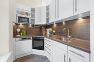 Die Küche schließt sich harmonisch an den Wohnraum an. Sie ist vollständig ausgestattet und bietet alles, was Sie für die Zubereitung Ihrer Lieblingsgerichte benötigen von kleinen Snacks bis zum ausgedehnten Abendessen. Durch die offene Gestaltung bleibt alles leicht, kommunikativ und wie aus einem Guss.