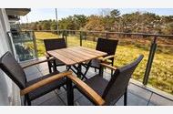 Das Wohn- und Esszimmer ist das Zentrum der Wohnung und lädt mit einer ausklappbaren Sofalandschaft zum Entspannen ein. Für Unterhaltung bei jedem Wetter gibt es einen Smart-TV und kostenfreies WLAN. Der Essbereich bietet Platz für 6 Personen und vom möblierten und überdachten Balkon aus hat man einen Blick auf den angrenzenden Küstenwald und die Ostseedünen.