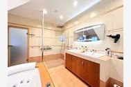Mit ca. 165 m² Wohnfläche bietet das Haus großzügigen Raum für einen komfortablen Aufenthalt. Im Obergeschoss befinden sich zwei Schlafzimmer eines mit großem Doppelbett, das zweite mit französischem Doppelbett sowie ein separates Ankleidezimmer. Ebenfalls im Obergeschoss liegt das große Badezimmer mit amerikanischem Whirlpool, moderner Glasdusche und hochwertiger Ausstattung.