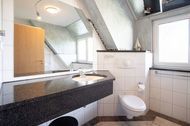 Vom Wohnzimmer aus erreichen Sie alle weiteren Räume sowie die großzügige Dachterrasse mit seitlichem Wasserblick. Über eine Treppe gelangen Sie zudem auf die offene Schlafgalerie, die mit einem Doppelbett und Kleiderschrank eingerichtet ist.