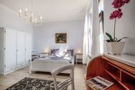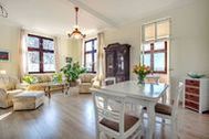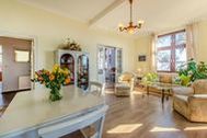 Die Ferienwohnung 1 ist hell und großzügig geschnitten, mit tollem Meeresblick und Terrasse. Eine sehr geräumige und stilvolle Wohnung mit großem Wohnzimmer und gemütlicher Sitzgruppe im Verandazimmer mit Blick auf die Ostsee.