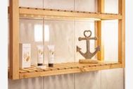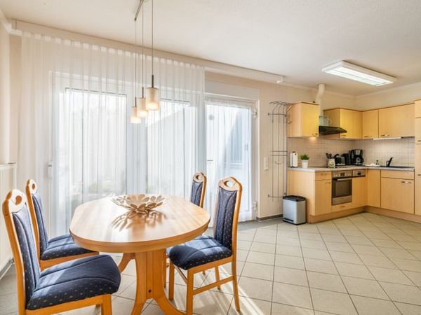 Die circa 45 m² große Ferienwohnung ist ideal für zwei Erwachsene und Kind. Sie verfügt über ein Schlafzimmer mit einem 180 cm breiten Doppelbett und einem großen Kleiderschrank mit Spiegeltür. Der Wohnraum unterteilt sich in einen gemütlichen Sitz- und Essbereich mit Schlafcouch sowie die offene Küche, die mit Herd, Backofen, Kaffeemaschine, Wasserkocher , Kühlschrank und Geschirrspüler ausgestattet ist. Das Badezimmer bietet Ihnen eine geräumige, bodengleiche Dusche mit einem klappbarem Duschsitz. Die Wohnung ist barrierefrei und rollstuhlgerecht. Eine Fußbodenheizung sorgt an kühleren Tagen für wohlige Wärme.