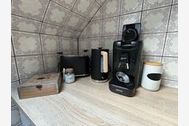 einen Backofen, eine Senseo-Kaffeemaschine und einen Kühlschrank. Eine